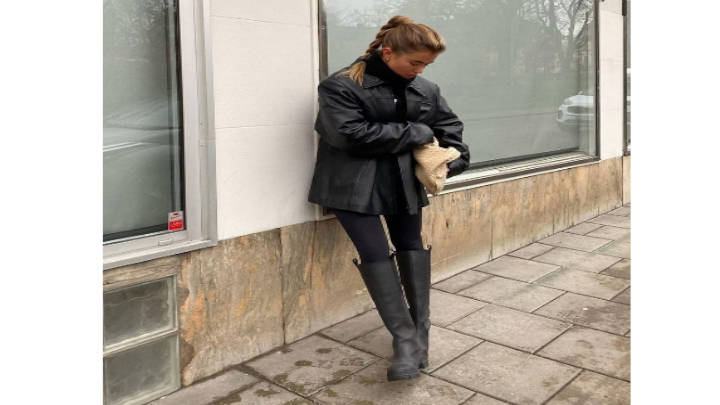 Nuestra referencia es la influencer Matilda Djerf, su intención es que a pesar de no tener ganas de vestirse debe verse impecable y fuera de serie; es decir, le encanta la moda, pero hay días como los de lluvia, que se le hace difícil. De esta manera, optó por un look donde el negro prevalece, un leggings, trench, un bolso de tono crudo y texturado, botas de agua para la lluvia y ¡Excelente!